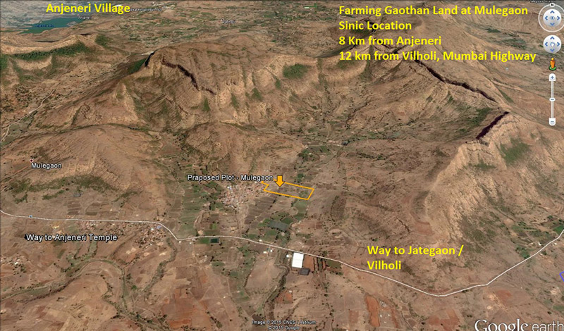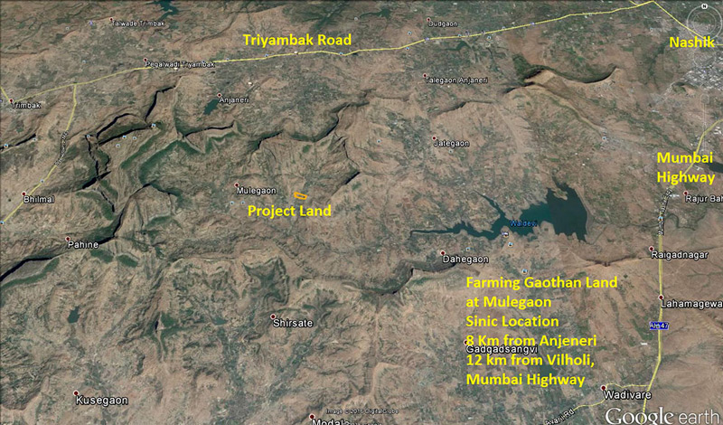9.5 Acres land in Gaothan area of Mulegaon. 8 kilometers away from Anjaneri, trimbakeshwar Road and 12 kilometers from Vilholi, Mumbai Road.